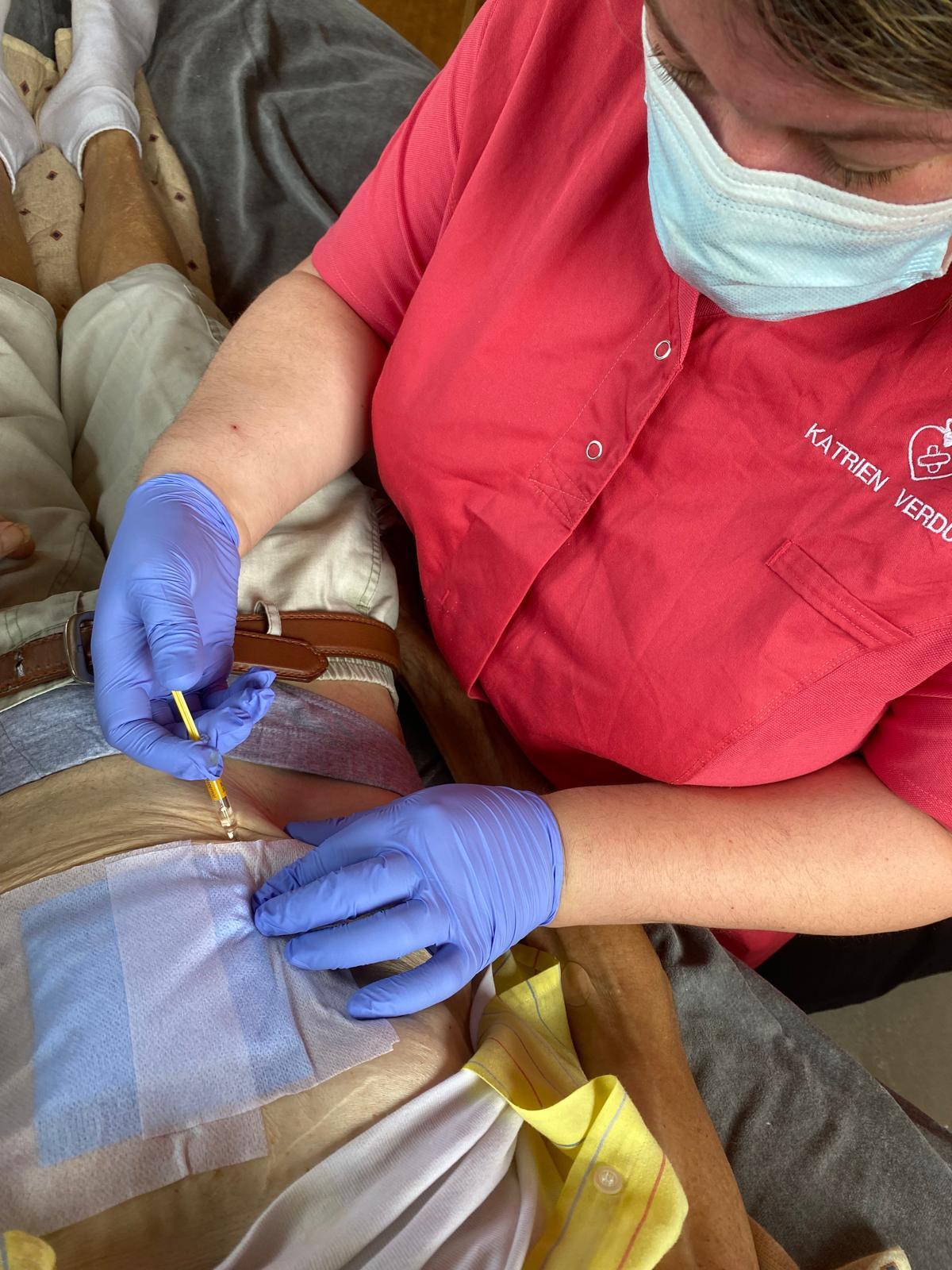 Onze verpleegkundigen komen langs voor het toedienen van de nodige inspuitingen, zo vaak als dat nodig is. We informeren je over de werking ervan en observeren je na toediening. Als dat mogelijk is, leren we je ook hoe je zelf een (onderhuidse) inspuiting kan toedienen.